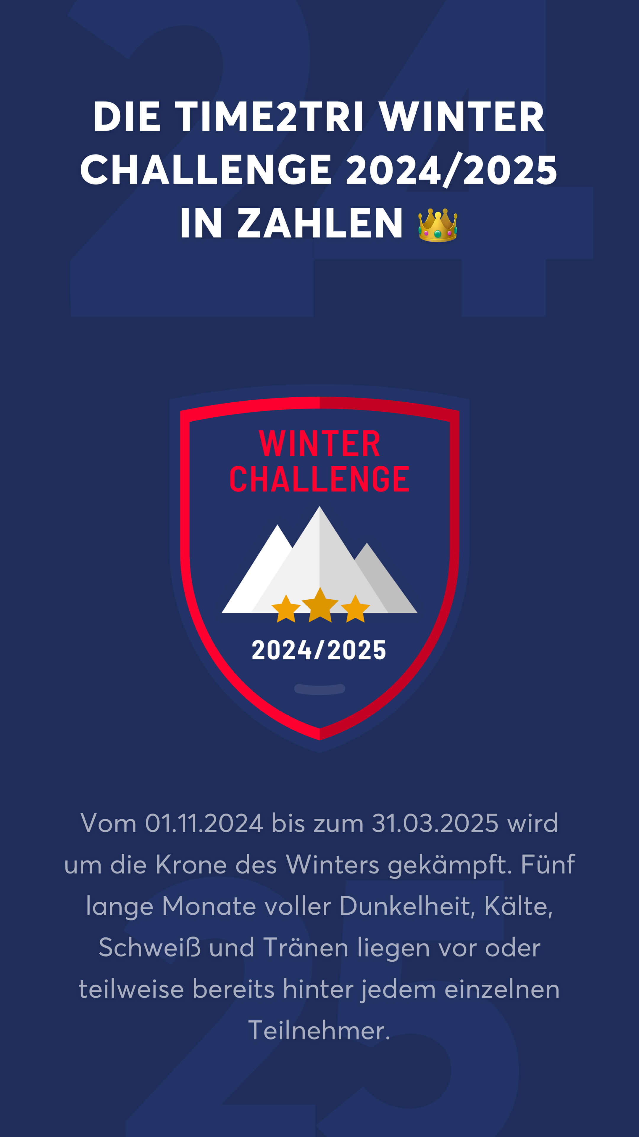 Die TIME2TRI "Winter Challenge" findet im Zeitraum 01.11.2025 bis 31.03.2026 statt.